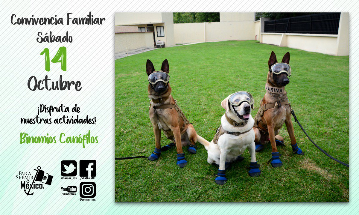 CIUDAD DE MÉXICO, 12 de octubre (AlMomentoMX).- La Secretaria de Marina (Semar) invitó a la población a acudir a sus instalaciones para tomarse una foto con Frida, Evil y Titán, los perros rescatistas que ayudaron en las labores de rescate tras el sismo del 19 de septiembre.