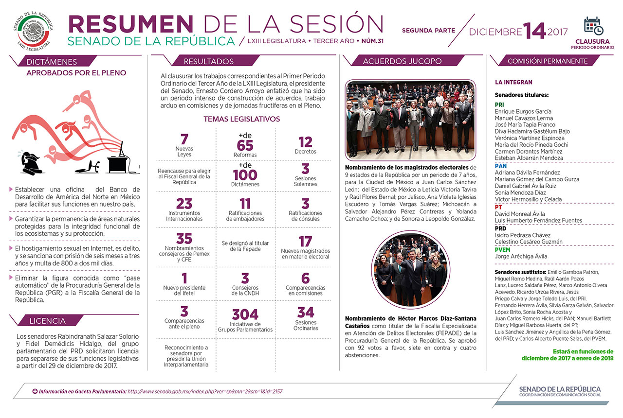 El senador Ernesto Cordero Arroyo, presidente de la Mesa Directiva, leyó un acuerdo de la Junta de Coordinación Política (Jucopo), que preside la senadora Ana Lilia Herrera Anzaldo, que propuso al Pleno el nombramiento de Héctor Díaz Santana.