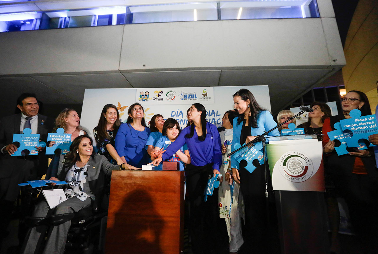 El Senado de la República se iluminó de azul la noche del cuatro de abril, en conmemoración del Día Mundial sobre la Concienciación del Autismo, y como una manifestación del compromiso de impulsar las acciones legislativas necesarias para que se reconozcan los derechos jurídicos y civiles de las personas que registran esta condición.