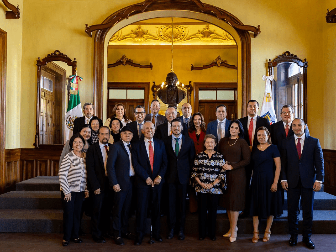 Imelda Castro Castro, vicepresidenta de la Mesa Directiva, y Martha Lucía Micher Camarena, presidenta de la Comisión para la Igualdad de Género, encabezaron la ceremonia para iluminar el edificio del Senado de la República de color naranja, con motivo del Día Internacional para la Eliminación de la Violencia contra la Mujer.