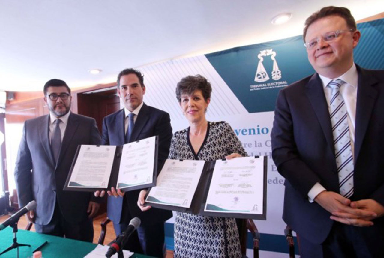 Por parte del TEPJF firmó Janine Otálora Malassis, magistrada presidenta del Tribunal; y también asistieron los magistrados Felipe de la Mata Pizaña y Reyes Rodríguez Mondragón; así como Ánuar Dáger Granja, director del Centro de Capacitación y Formación Permanente del Senado, y Carlos Soriano Cienfuegos, director del Centro de Capacitación Judicial Electoral.