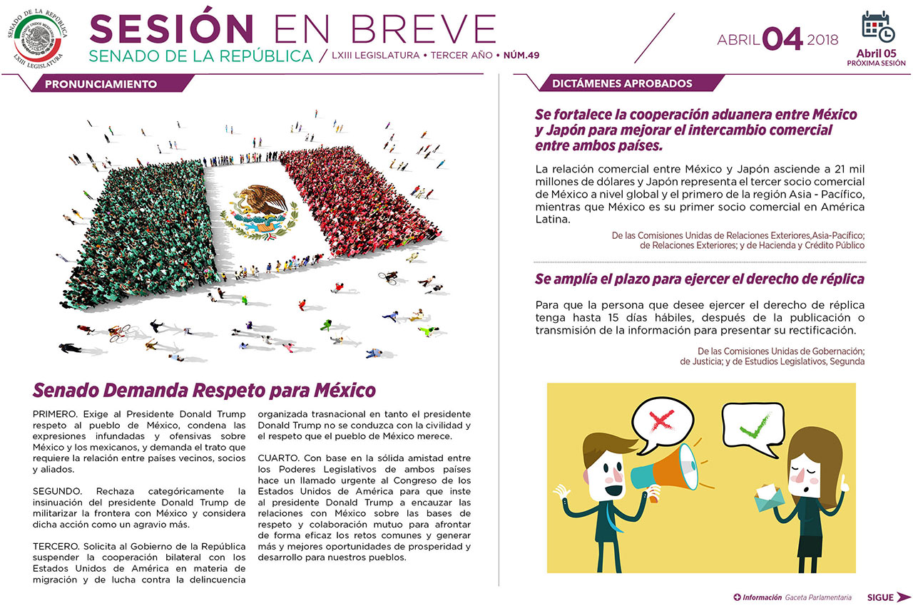 El Senado rechaza categóricamente militarizar la frontera con México y pide al Gobierno de la República suspender la cooperación bilateral con los Estados Unidos