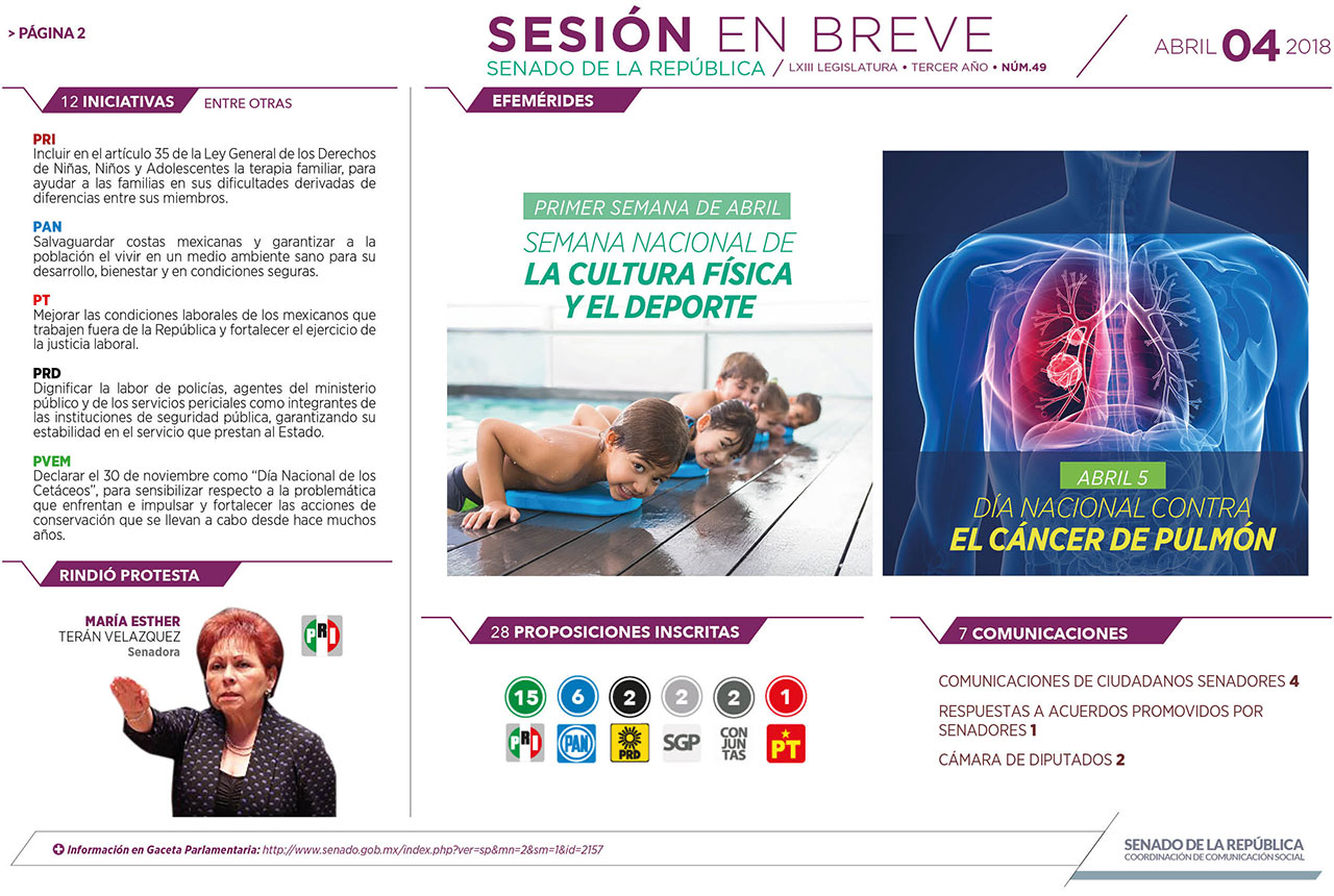 Sesión en breve, Abril 4, 2018