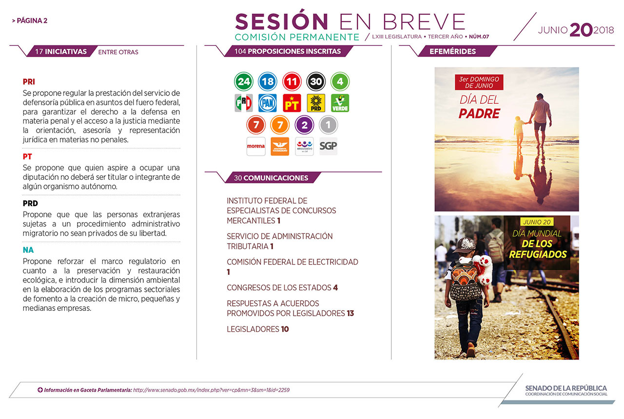 Sesión en breve Comisión Permanente, Junio 20, 2018
