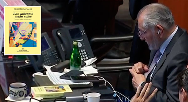 Cuando fue sorprendido con su dispositivo portátil en las piernas disfrutando el juego de estrategias entre Flick y Luis Enrique, además de tres aparatos telefónicos inteligentes conectados y una botella de agua gasificada francesa Perrier, López Hernández tenía encima de su escaño la crónica-novela periodística-jurídica de Saviano, Los valientes están solos —592 páginas, 495 pesos—, que relata la operación de organizaciones criminales y el asesinato del juez Falcone, víctima de la Cosa Nostra. Un libro que narra sobre mafias, criminales, violencia, muerte y justicia.