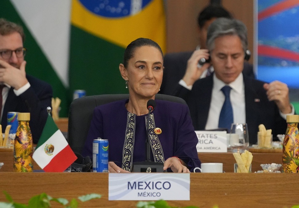 Sheinbaum subrayó que la política debe ser un medio para proteger a los desprotegidos y construir un futuro más inclusivo. «Aquí nos sentamos para hacer política, para construir la paz y proteger a los que sufren», afirmó ante los líderes de las principales economías del mundo.