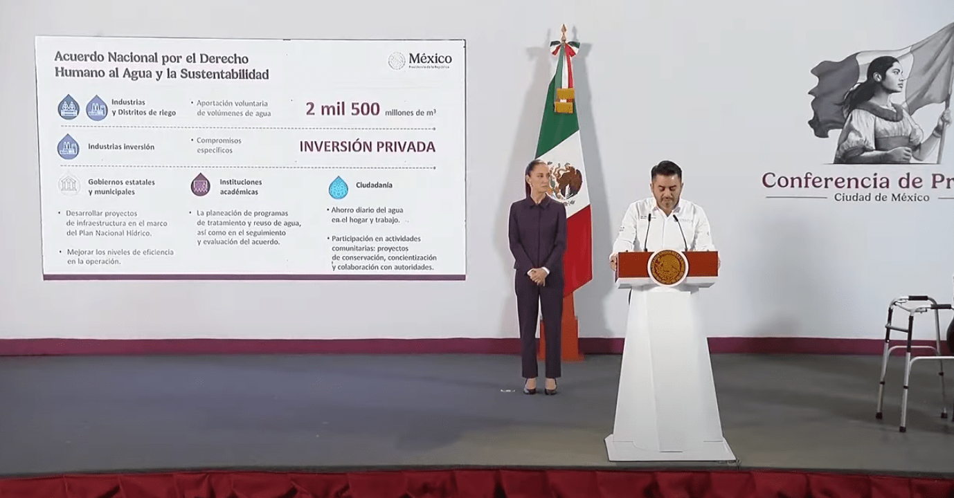 El 21 de noviembre, la presidenta de México, Claudia Sheinbaum Pardo, presentó el Plan Nacional Hídrico 2024-2030, cuyo objetivo es ordenar las concesiones de agua de particulares y crear el Registro Nacional de Agua para el Bienestar. Con este plan, el gobierno busca garantizar que el agua sea vista como un derecho, no como una mercancía, subrayando la necesidad de que este recurso natural regrese a la nación para beneficiar a todos los mexicanos.