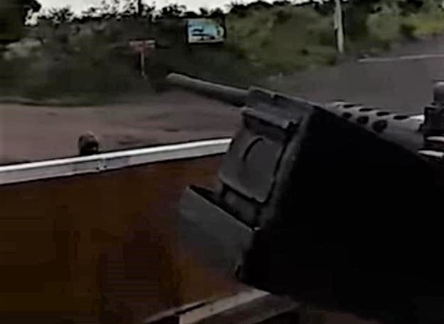 En una de las salidas del “retén”, los gatilleros del CJNG se encuentran pertrechados y listos para disparar un rifle antiaéreo tipo Barret, calibre .50 y especial para penetrar blindajes.