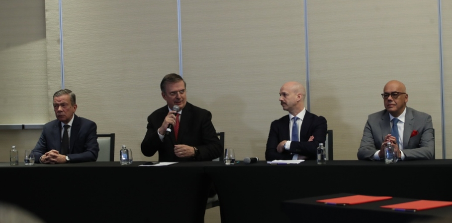 La ceremonia, estuvo encabezada por el secretario de Relaciones Exteriores de México (SRE), Marcelo Ebrard, ante quien se acordó la puesta en marcha de un “acuerdo parcial en materia social”, mediante el cual las autoridades venezolanas atenderán las demandas sociales más urgentes en el país y la resolución de diversos problemas en los servicios públicos.