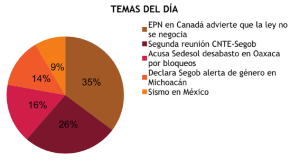 Como parte de los temas que analizan están las demandas del magisterio disidente y la situación de Oaxaca, sobre todo la actividad económica que ha resultado afectada por los bloqueos viales.