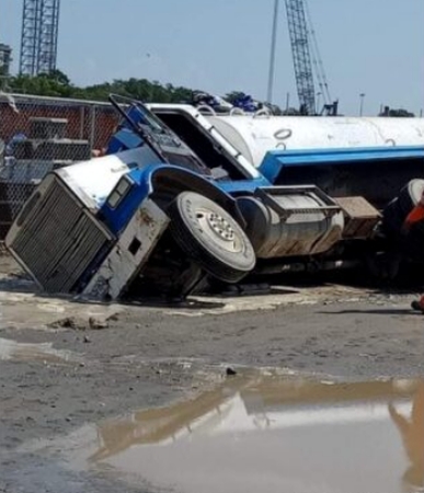 Redacción MX Político.- Un camión cisterna conteniendo agua cayó en un socavón originado por el reblandecimiento del terreno en donde se construye actualmente la refinería de Dos Bocas, en el estado de Tabasco.