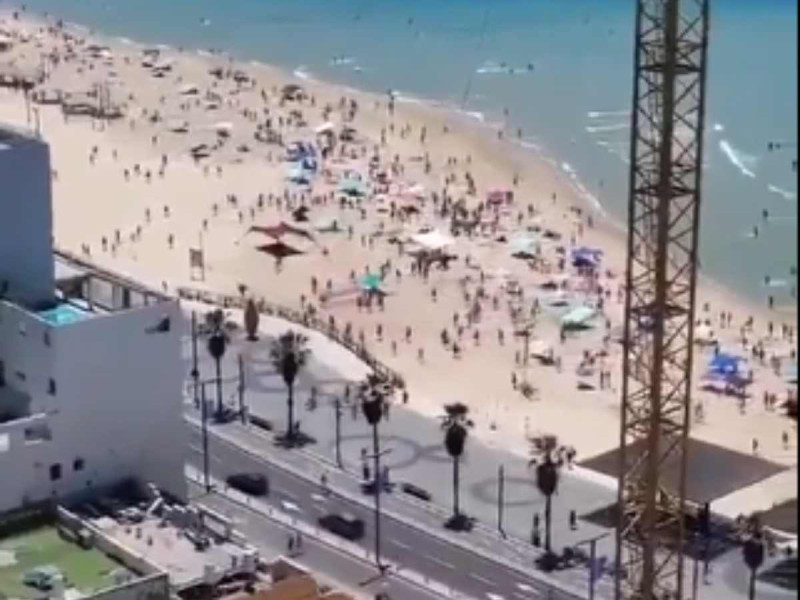 En las imágenes, captadas desde un edificio cercano, se puede ver a decenas de turistas y paseantes salen corriendo de las playas tras el sonido.