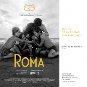 CIUDAD DE MÉXICO, 11 de diciembre (AlMomentoMX).- Si eres del montón que ya no alcanzó boletos en ninguna sala de cine para ver Roma, el próximo jueves 13 de diciembre podrás verla en el Teatro de la Ciudad a las 20:30 horas.