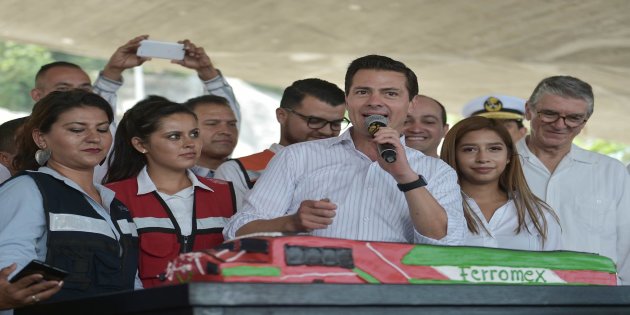 Durante la ceremonia, Peña Nieto partió un pastel con forma de tren y agradeció a Dios y a los mexicanos la oportunidad de contribuir a crear una mejor nación.