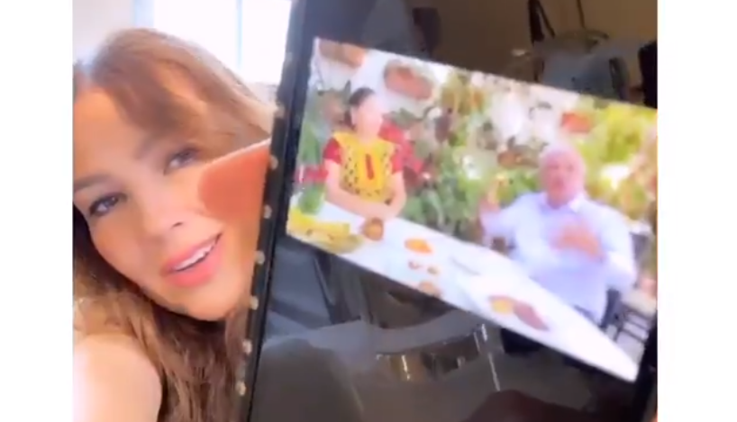 En el clip que la cantante mostró ante la cámara aparece el presidente exhortando a la población a “no dejar de salir”: “Todavía estamos en la primera fase. Yo les voy a decir cuándo no salgan (…) Si pueden hacerlo y tienen la posibilidad económica, sigan llevando a la familia a comer a los restaurantes, a las fondas, porque eso es fortalecer la economía familiar y la economía popular”, dijo el político en medio de una plática casual durante una comida celebrada este fin de semana en el restaurante La Teca, en Oaxaca.