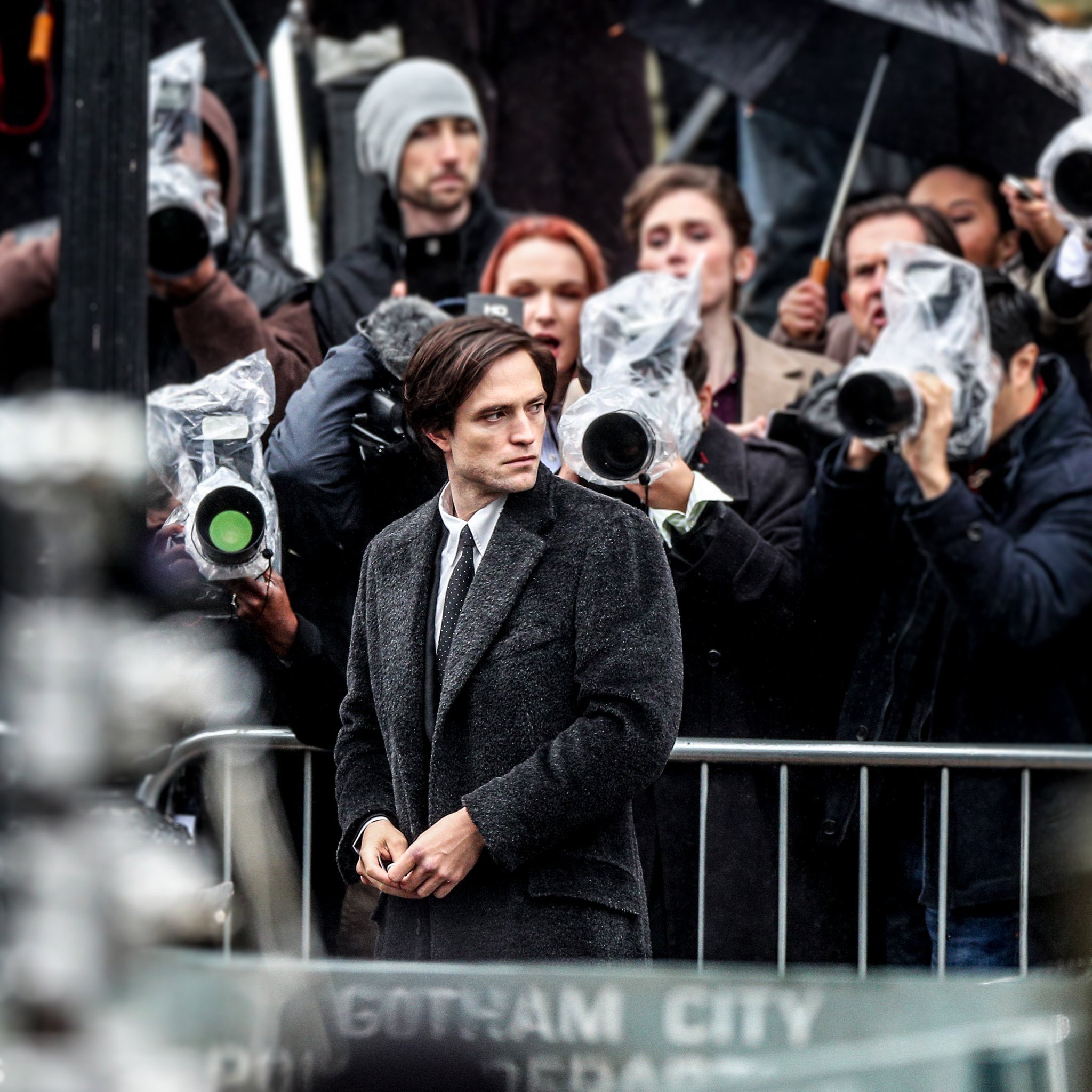 El sitio Just Jared reveló fotos en el set de grabación de The Batman, que se encuentra actualmente en la ciudad de Liverpool, Inglaterra. Se pudo ver a Pattinson y varios extras que se preparaban para filmar la escena de lo que parece ser un funeral.