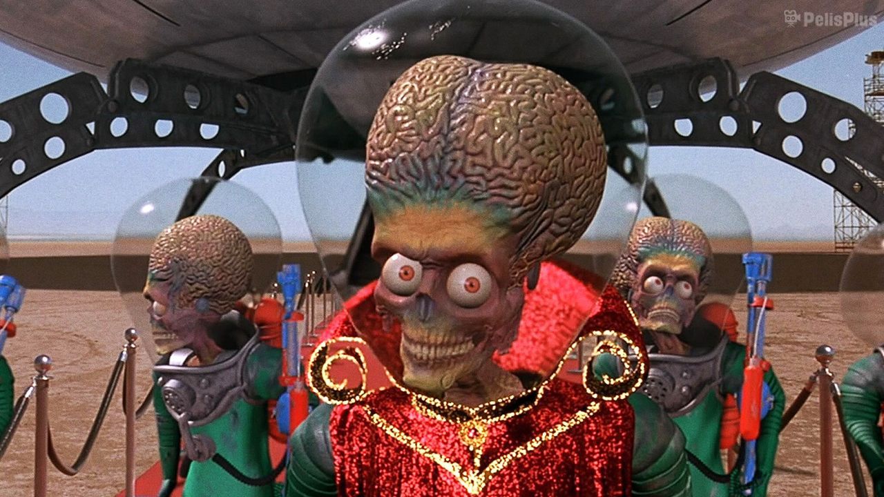 Esta cinta parodia a las películas de ciencia ficción de los años 50, y en su momento tuvo un reparto lleno de estrellas: Jack Nicholson, Glenn Close, Pierce Brosnan, Annette Bening, Danny DeVito, Sarah Jessica Parker, Natalie Portman, Michael J. Fox, Jim Brown, Jack Black y Christina Applegate. Sin embargo, hoy en día son pocos los que conocen o recuerdan este filme.