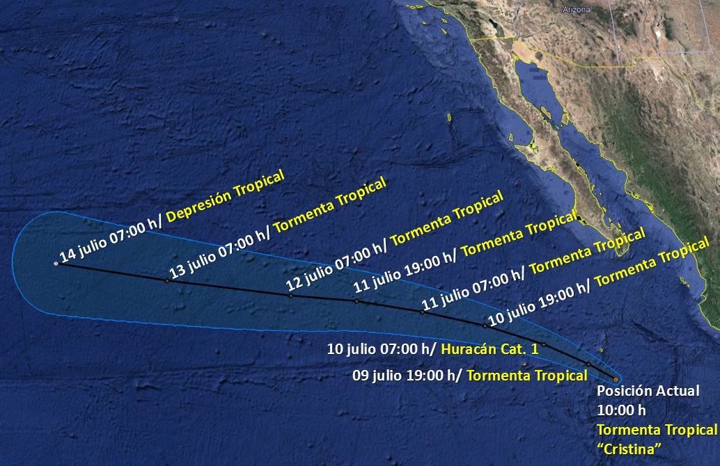 JALISCO.- La tormenta tropical “Cristina”, localizada al suroeste de Jalisco, podría convertirse hoy en huracán, según las previsiones de la Comisión Nacional del Agua (Conagua).