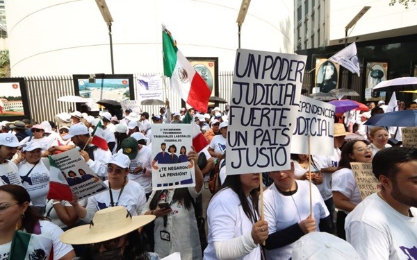 Los trabajadores judiciales también criticaron al gobierno, afirmando que no busca mejorar la justicia en México, sino consolidar el poder. “Ustedes ya han visto lo que ha pasado en Cuba, en Venezuela, en Bolivia, y este gobierno está siguiendo ese camino”, advirtió Aguayo.