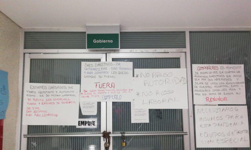 Por ello, este lunes los trabajadores decidieron cerrar la dirección del hospital donde colocaron pancartas con mensajes que denuncian la precaria situación en la que se encuentra el nosocomio.