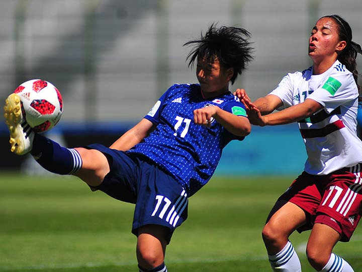 Las niponas se pusieron al frente en el marcador al minuto 39, luego de una gran jugada individual de Momoka Kinoshita, quien disparó con la pierna zurda para poner el esférico pegado al poste derecho. La portera no pudo hacer nada ante el remate.