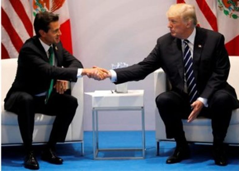 HAMBURGO, 7 de julio (AlmomentoMX).- El presidente de Estados Unidos, Donald Trump, se refirió este viernes a Enrique Peña Nieto como su “amigo”; sin embargo, reiteró que México deberá pagar por el muro que busca construir en la frontera entre ambos países.
