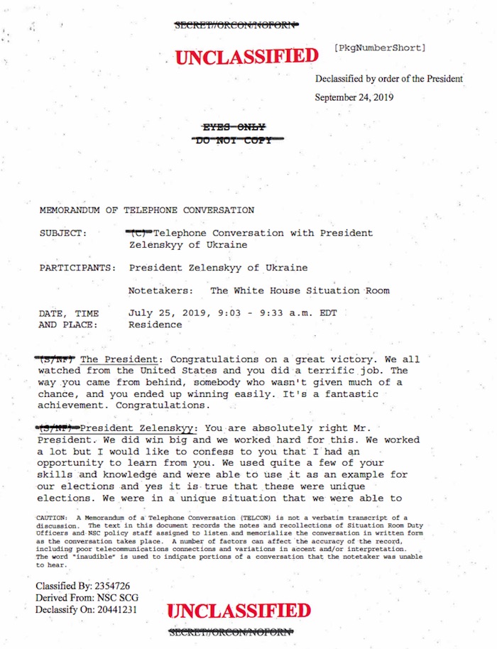 As President Trump promised, here is the full, unredacted transcript of his call with the Ukrainian President: https://t.co/XURxHAjTDK