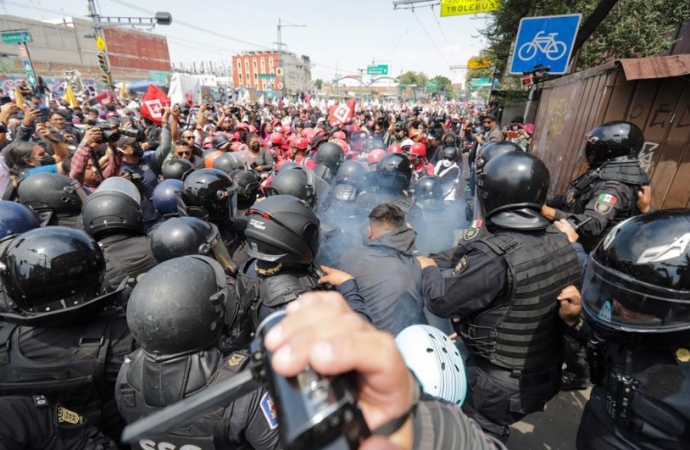 Redacción MX Político.- Llegó la tumultuosa manifestación de activistas , estudiantes y grupos ‘anarcos’ a la Plaza de la Constitución en el Centro Histórico de la Ciudad de México y deja a su paso una estela de pintas, destrozos y violencia física, tal y como sucede año tras año.