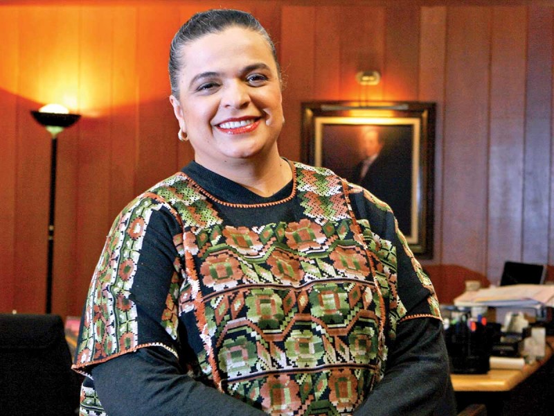 La ex lideresa del PRI recibe a La Jornada en su casa al sur de la Ciudad de México con su habitual y orgulloso estilo de vestir, honrando como siempre a la cultura mexicana.