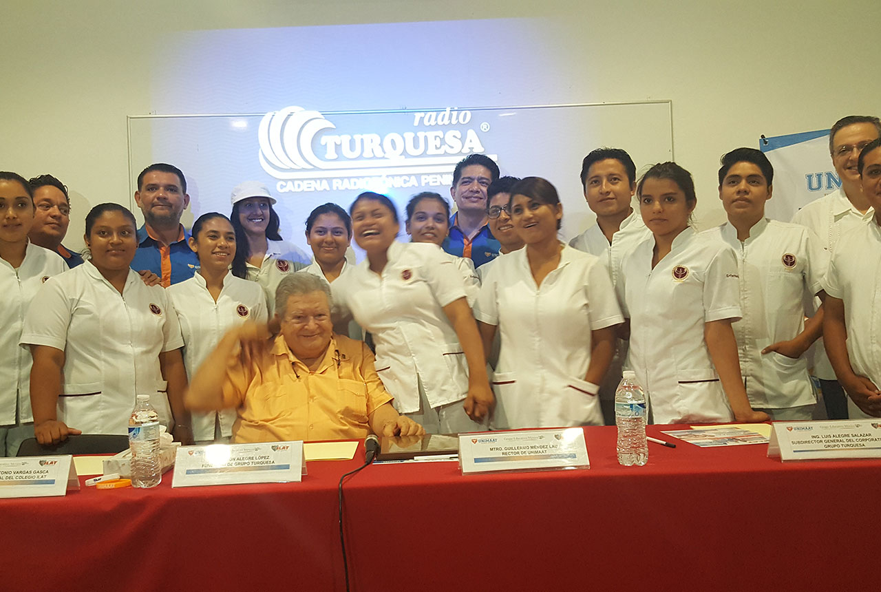 Cancún, 6 de julio.– El Rector de la Universidad Unimaat, Guillermo Méndez Lau entregó hoy un reconocimiento al director del Grupo Radiofónico Radio Turquesa, Gastón Alegre López, “por su decidida y perseverante labor a favor de los Mayas en México” y en reconocimiento a su trayectoria intelectual, política y académica.
