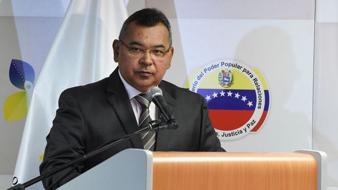 “Se prohíbe en todo el territorio nacional las reuniones y manifestaciones públicas, concentraciones de personas y cualquier otro acto similar, que puedan perturbar o afectar el normal desarrollo del proceso electoral”, indicó el ministro de Interior, el general Néstor Reverol, un día antes de una gran marcha opositora en Caracas.