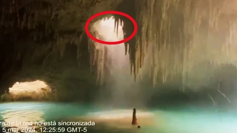 En el video se logra apreciar como bloques de la cúpula del cenote caen al agua mientras un taladro crea el espacio suficiente para colocar una columna que posteriormente sostendrá parte de la obra del Tren Maya.