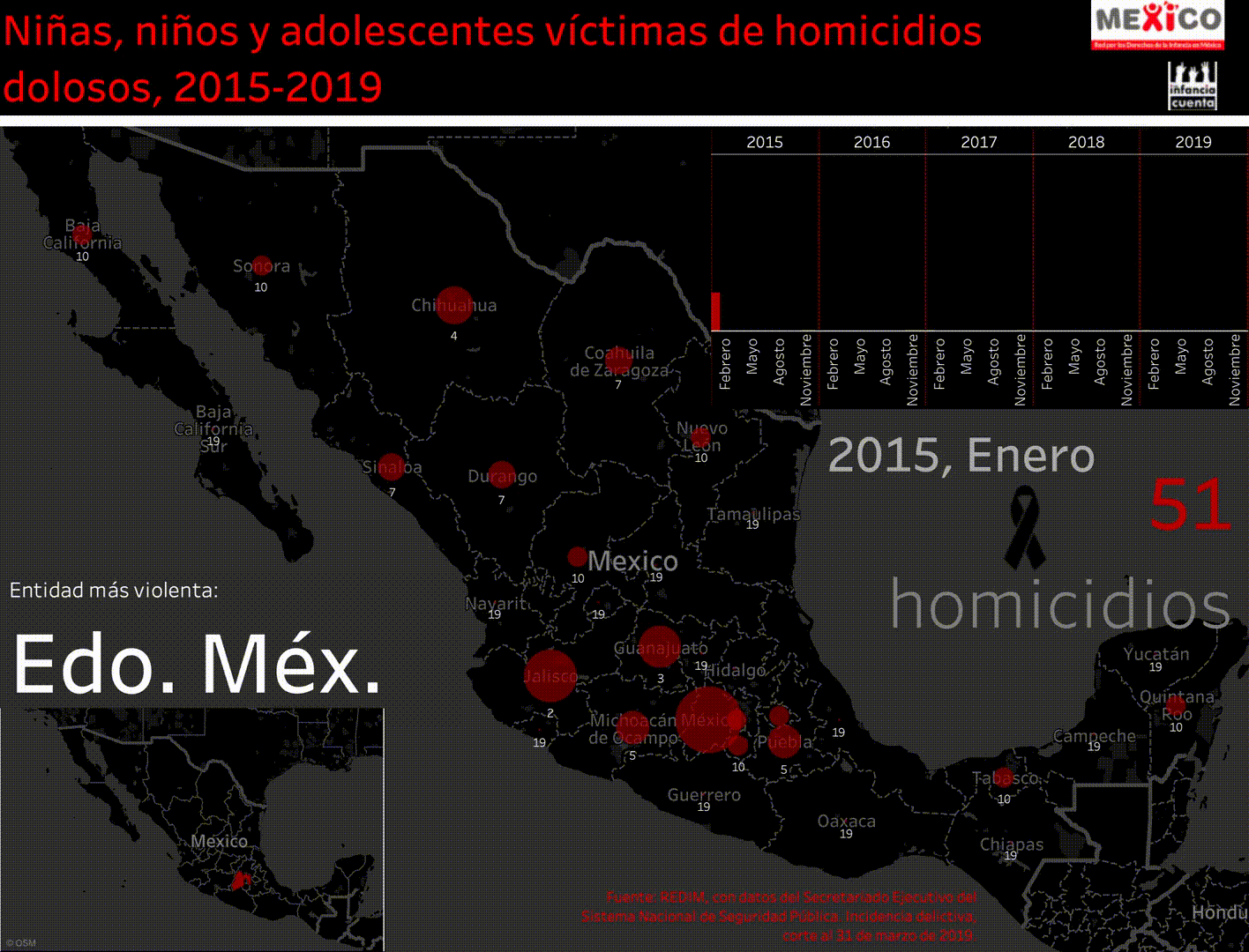 El director de Redim destacó que aunque la violencia y los homicidios contra este sector iniciaron durante la guerra contra el narcotráfico en la administración de Felipe Calderón, las cifras se han mantenido, pues el mes más violento para la población de cero a 17 años fue junio de 2018, cuando ocurrieron 222 asesinatos de infantes.