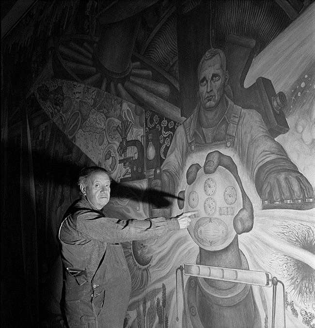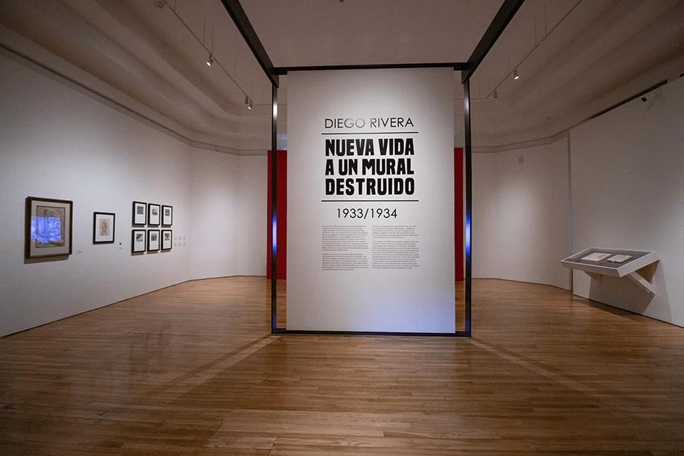 La exposición hace una revisión puntual, a partir de una minuciosa selección de bocetos, fotografías y documentos, del mural destruido en Nueva York que el artista mexicano creó en 1933, y que pocos meses después le fue comisionado recrear en el Palacio de Bellas Artes, bajo el título El hombre controlador del universo (1934).