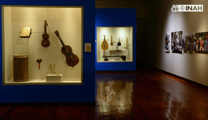 Compuesta por 51 fotografías registradas de 1895 a 2023, 20 instrumentos musicales de cuerda, viento y percusiones y una sala de proyección audiovisual, provenientes de la Fonoteca y la Mediateca del INAH, las fototecas Nacional y de la Escuela Nacional de Antropología e Historia, del Instituto Nacional de los Pueblos Indígenas y de colecciones particulares, muestran a las y los herederos de tradiciones ancestrales plasmadas en coplas, melodías y danzas, en sus diferentes escenarios.