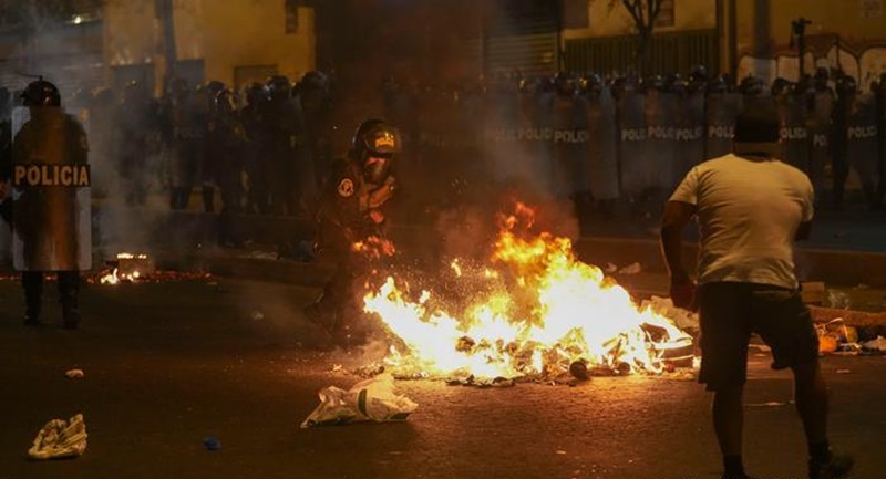 Las protestas reunieron por segundo día consecutivo a miles de personas en Lima, muchas de ellas llegadas desde las regiones del sur de Perú y, tras un inicio pacífico, llevaron a choques con los agentes de la Policía, que fueron atacados con piedras y otros objetos, y respondieron con gases lacrimógenos.