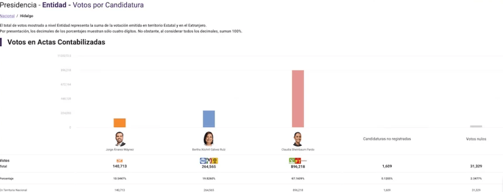 Estos resultados reflejan una tendencia clara que también se ha manifestado en Hidalgo, donde Sheinbaum obtuvo una mayoría aún más pronunciada.