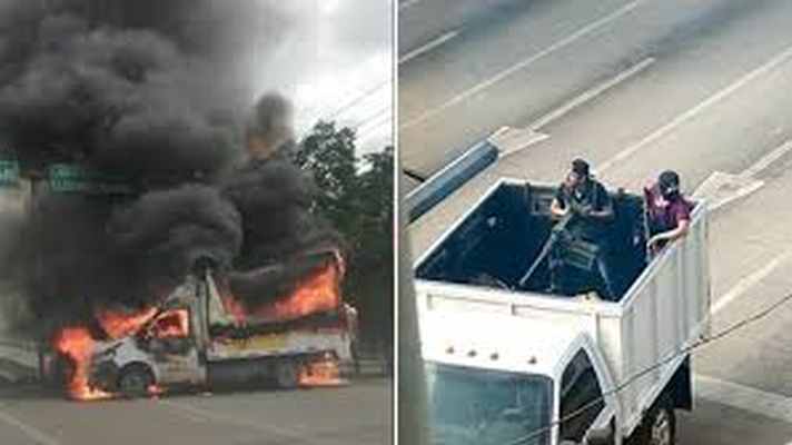 Que hay barricadas con vehículos y camiones matrialistas “ardiendo”