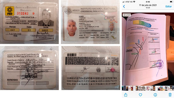 Este reportero tiene copia de las credenciales de elector, de filiación al Partido de la Revolución Democrática (PRD) firmadas por el inculpado y por el entonces presidente del partido, actual presidente de México, Andrés Manuel López Obrador, así como copia de un peritaje que demuestra la falsificación de su firma para solventar su falaz acusación.