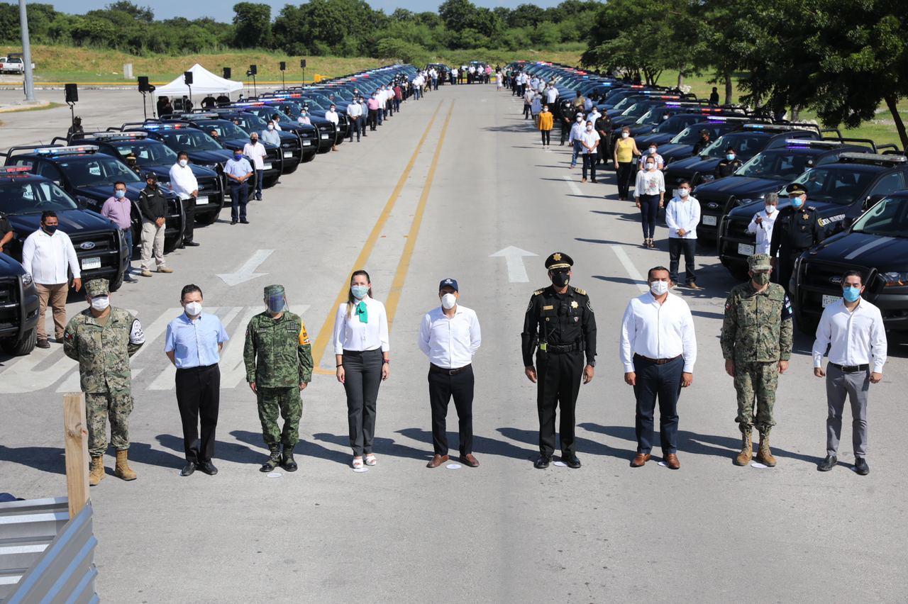 Como parte de la estrategia “Yucatán Seguro”, también se ha entregado un total de 274 nuevas patrullas a municipios del estado para ampliar el parque vehicular de sus cuerpos de policía. De igual manera, se está construyendo el Centro de Control, Comando, Comunicaciones, Cómputo, Coordinación e Inteligencia (C5i), obra que fortalecerá la seguridad del estado.