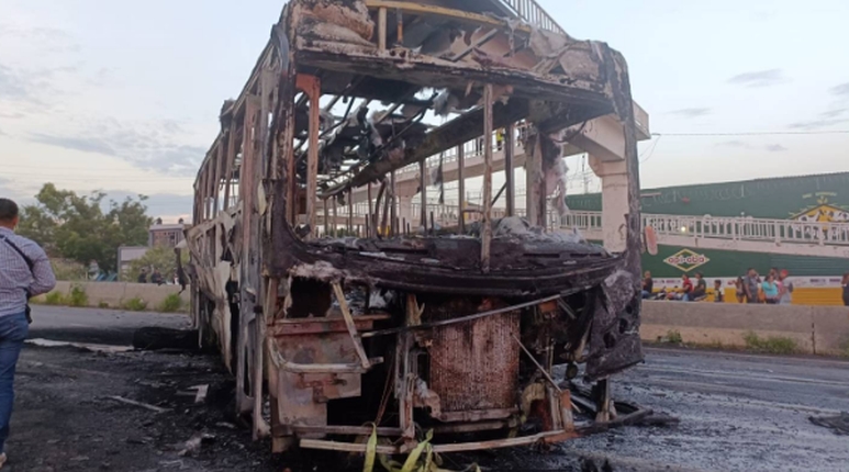 El evento derivó en varios bloqueos de vialidades donde personas armadas quemaron unidades de transporte público y vehículos particulares.